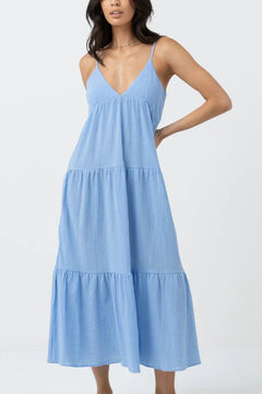 Made for breezy summer days poolside under the warm sun, the Cleo Tiered Midi Dress features in our latest ocean colourway and cut from 100% cotton. An effortless tiered midi dress that flows with soft gathers and flattering necklines.