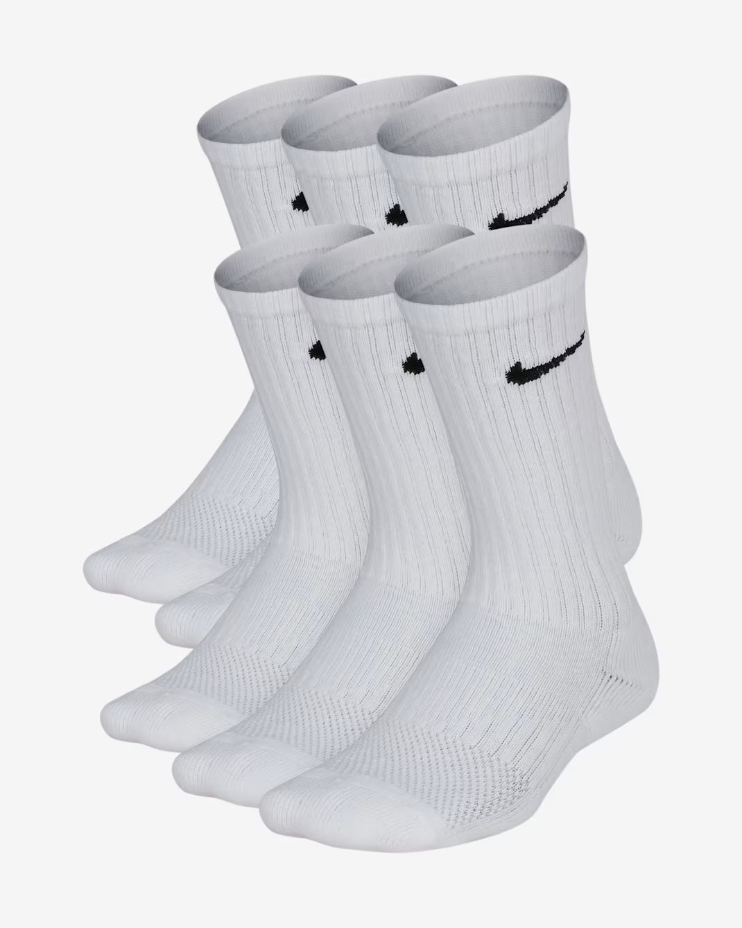 The Nike Performance Cushioned Crew Kids' Training Socks (6 Pair) are made with sweat-wicking fabric to help keep your dry and comfortable as you work out.