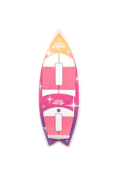 A new thinner profiled all-around 3'9 length fun board with a girl’s specific graphic. A fish-profile with a deep swallow tail that can easily break free on the top of the lip yet has the bottom turn drive to get you there quickly. A versatile shape that withstands time in the progression of surfer designs and constructions. A clean bottom, fast rockerline, and smooth rails combined with the swallowtail Fish profile allows it to ride loose, breaking free on the top of the lip, yet still responsive for a bottom turn drive that will get you there on time. You’ll get recreational level ease and stability from this smooth ride – a perfect board for us inlanders looking for wake slashing adaptability. A ride for all styles and abilities. With 3 fins this board will track harder and feel more secure in the water. Made from a construction like our best-selling wakeboards, this board is stronger than most kid’s surfers and is also easier to submerge for deep water starts. Also comes with a performance award sticker pack with the various tricks that should be on any grom’s to do list. But most importantly it has a little extra assistance by our propelled turbo 3000 fin.