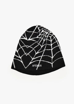 A statement beanie with a custom jacquard spiderweb design and embroidered logo. Designed for warmth and everyday wear, finished with a snug fit that holds its shape.