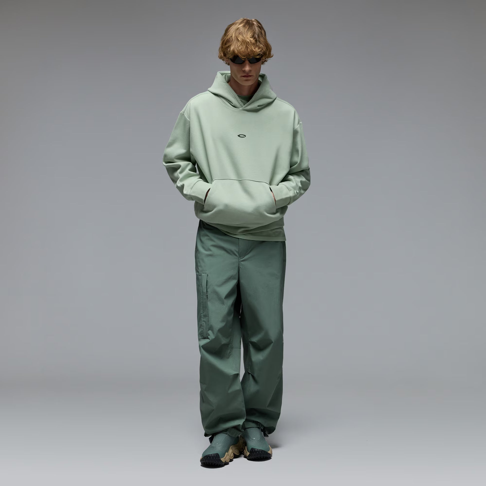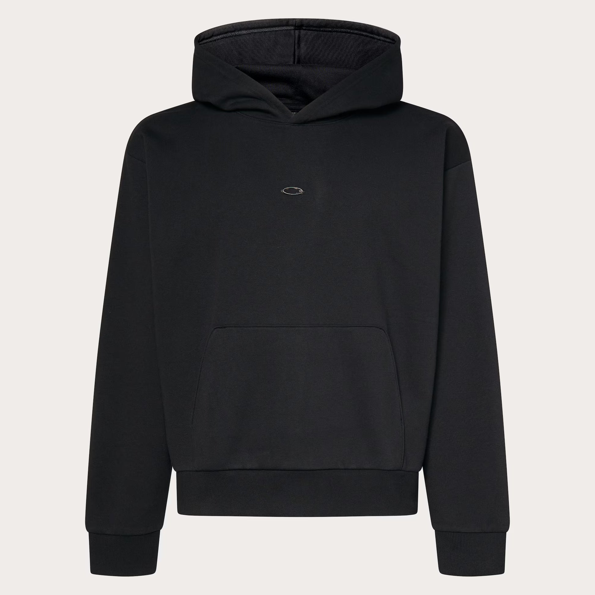 This cotton/poly hoodie has a relaxed boxy silhouette with dropped shoulders and ribbed cuffs and hem for additional comfort. Rounded front kangaroo pocket for tucking away little essentials and metal-effect logo print on chest.