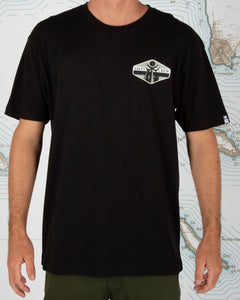 The High Tail S/S Tee in Black is a men's short sleeve t-shirt featuring original artwork of the Barracuda, Marlin and Yellowfin Tuna tails screen-printed on the front and back. Made from 100% cotton.