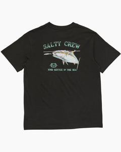 The Surface Classic SS Tee in Black is made from soft spun cotton jersey, 180gsm in weight. It features digitally printed front and back prints and is finished with a Salty Crew clamp label at the sleeve hem.