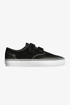A refined shape from the classic Motley for improved fit and feel while maintaining all the features of the original skate classic. We replaced the laces with Velcro straps and added a rubber toe cap for increased durability. A seamless toe design, reinforced heel for durability and vulcanized construction. The Motley Strap II in Black/White features suede upper, Globe's Shockbed™ insole for impact control and Super-V™ out sole for board feel and grip.