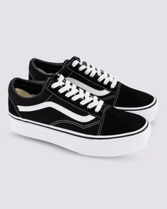 The Old Skool Platform combines the classic side stripe skate shoe with sturdy canvas and suede uppers, re-enforced toecaps to withstand repeated wear, padded collars for support and flexibility, and platform signature rubber waffle outsoles.