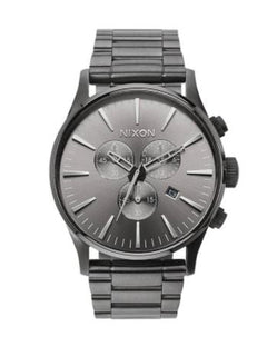 A timeless 42 mm design with the modern Nixon twist of faceted applied hour indicesChrono and Date