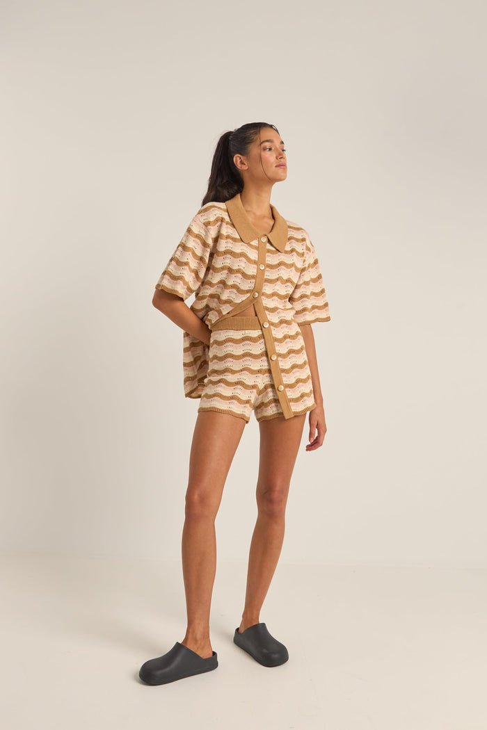 A cosy addition to your surf wardrobe, discover the Aries Stripe Knit Short. The 3-colored yarn patterned knit and open-weave design comes built with an elasticated waist and relaxed fit, these mid-weight shorts feature a contrast rib waistband and hem rib, designed to pair effortlessly with our Aries Shirt for the perfect matching set.