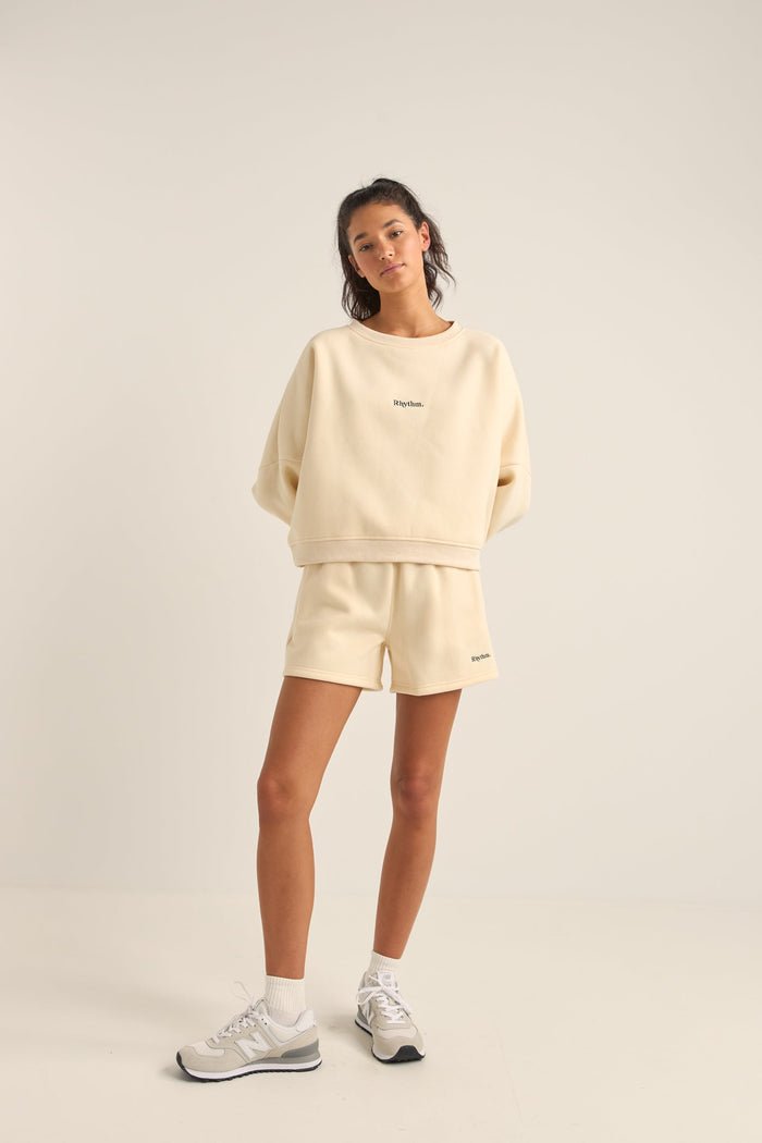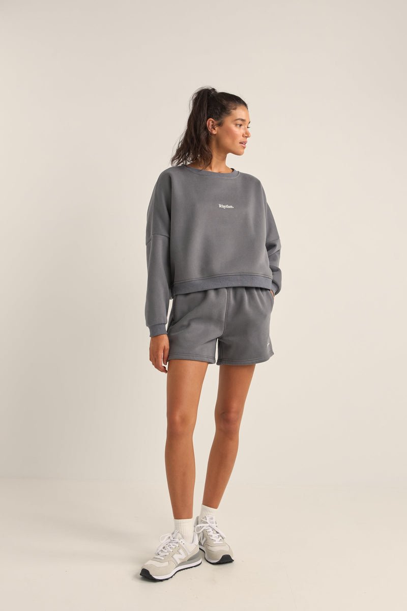 Forever comfort in the Logo Fleece Shorts by Rhythm. These mid-rise sweat shorts feature a comfy elastic waistband, offering the perfect blend of style and ease. With a relaxed fit and convenient side seam pockets, they're ideal for on-the-go adventures. The small contrast embroidery logo at the hem adds a touch of signature surf-inspired flair, making these shorts a must-have for all-time comfort.