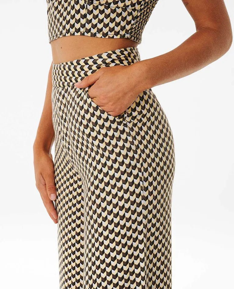 Elevate your style with the Isla Geo Pant. Crafted from linen viscose slub fabric, this standard fit pant offers both comfort and sophistication. The softener wash adds a luxurious feel, while the all-over yardage print adds a trendy and playful element. Complete with hidden zippers and an inner waist label, the Isla Geo Pant is a fashionable and versatile choice for any occasion.